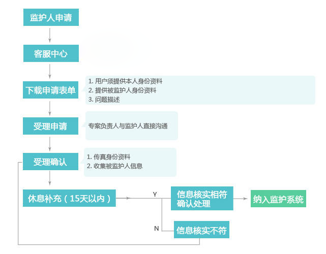 A:第一步:联系我们, 并提交信息; 第二步:会有专业的家长监护主管回访您; 第三步:如信息确认过程中,有需要您配合补充资料的情况,我们将联系您; 第四步:资料确认无误后,会按您的需求对监护账号进行处理。